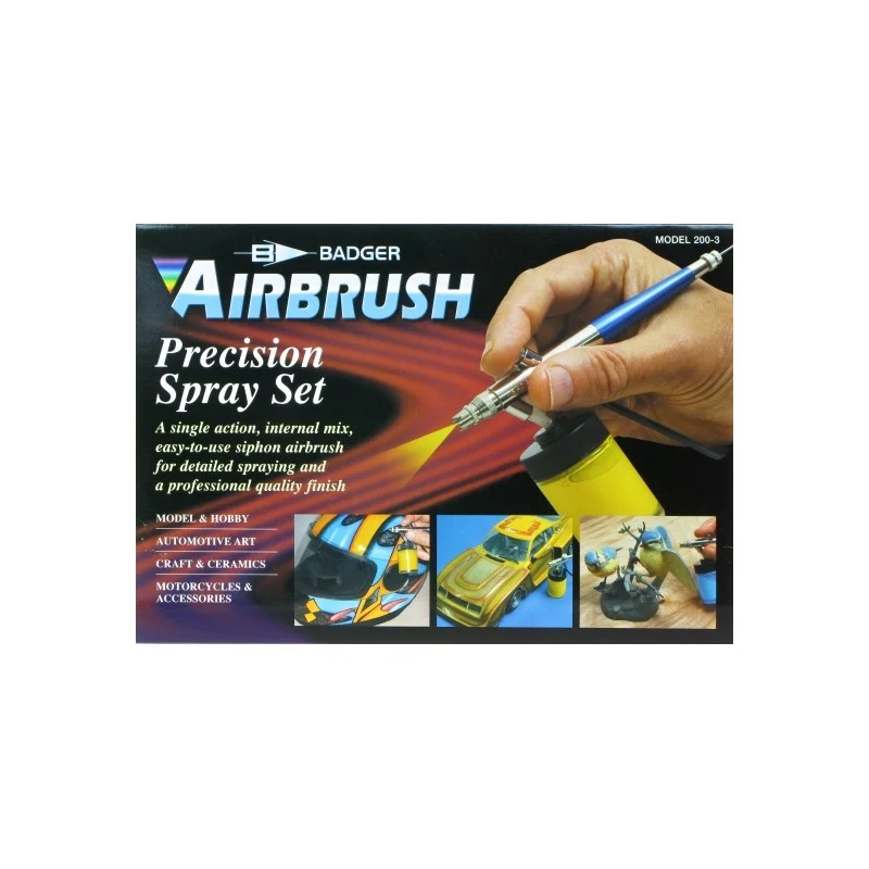Simplicity of use makes this the top choice for the advanced model painter or decorative stenciler. Also an excellent airbrush for painting posters, auto detailing and ceramics. The Model 200 will spray inks, dyes, watercolors, gouaches, properly reduced acrylics, fabric paints, modeling paints, automotive lacquers and enamels, most ceramic stains and glazes, Air-Tex®, Air-Opaqueª and MODELflex®airbrush colors. (Available in a single head design or detail design).