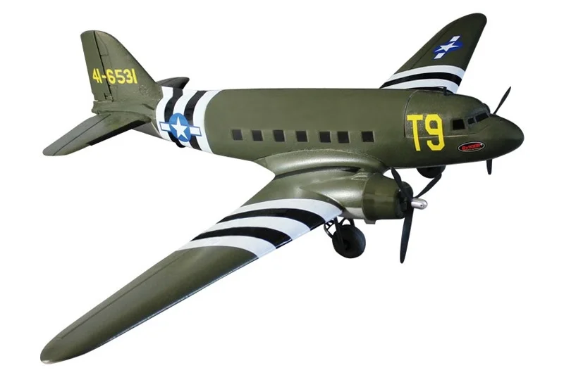 The pre-fitted outrunner motors give the C-47 plenty of power to get off from even the roughest of strips and the scale landing gear is very sturdy. Despite its size, the Skytrain only uses a 2200mAh 3s lipoly making it cheap to get into the air, a must for any warbird enthusiast, this is your chance to own a model of one of the most important aircraft of WW2