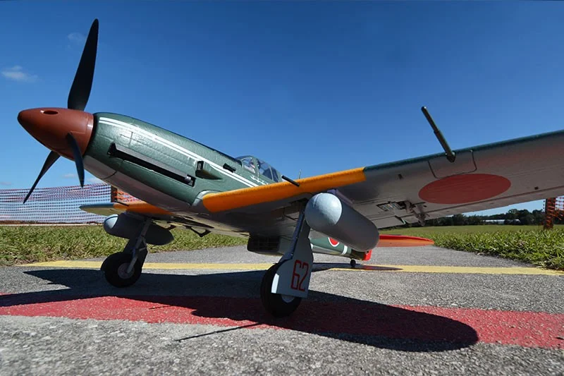 The third of FMS’s mighty 980mm series aircraft has arrived! The KI-61 is, like the 980mm P47 and P-40, is definitely a head turner! If you love warbirds and enjoy the excitement of heart-pounding speeds,this aircraft will satisfy both of your desires! The stock 3 bladed props, 3648 brushless outrunner, 4 cell battery and 60A ESC means that the Ki-61 can attain speeds of up to 100mph+. Be ready to turn heads with the awesome 995 mm Ki-61!