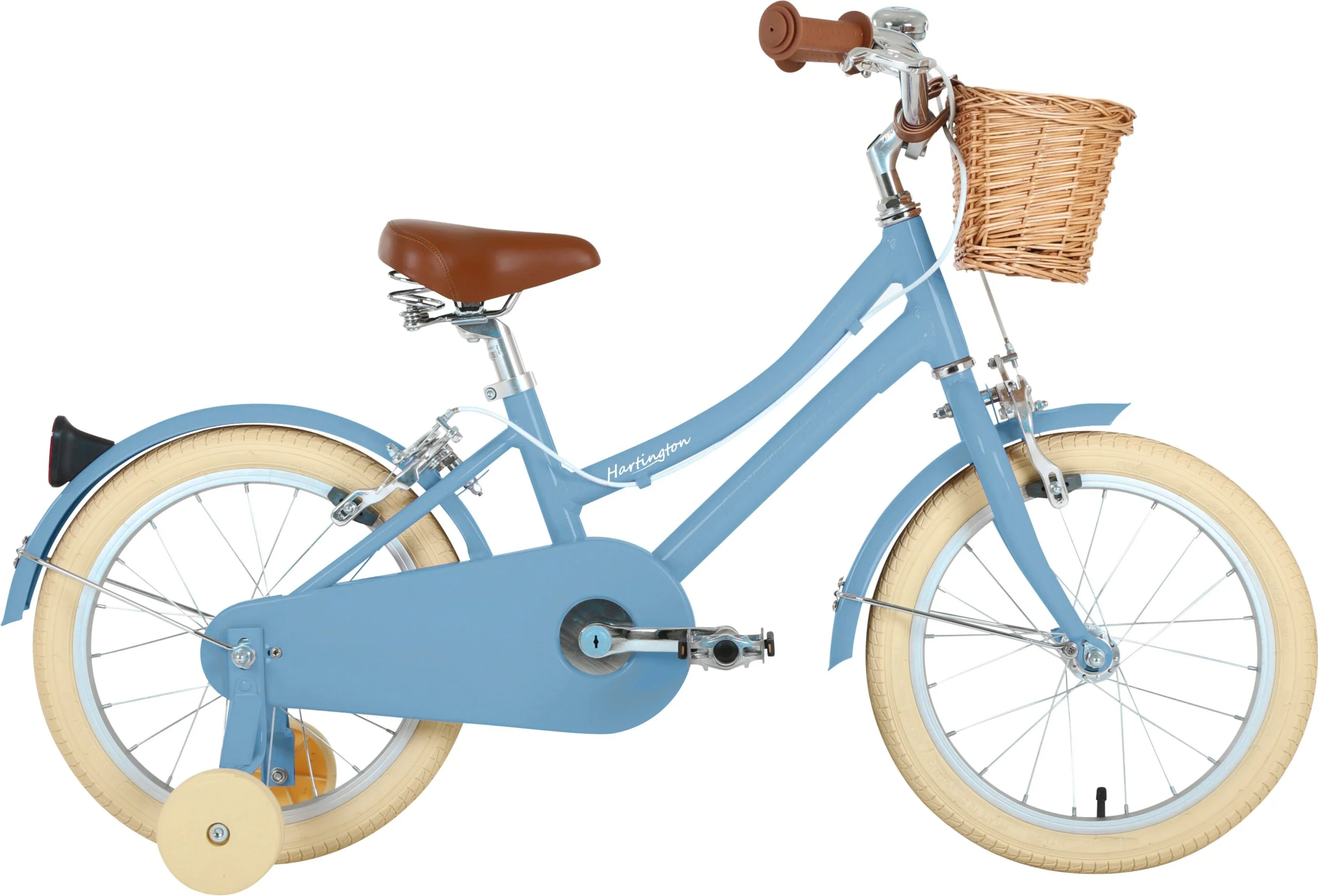 Born as part of the Hartington family, the Hartington 16 is the mini me addition for youngsters ranging from 4-6 years old. The sophisticated style of the Hartington sets it apart from most junior bikes. The trendy heritage styling and easy step through frame is supported with many comfort and practical benefits and features such as high rise handlebars, easy-reach brakes, non slip pedals and a brown wicker basket.