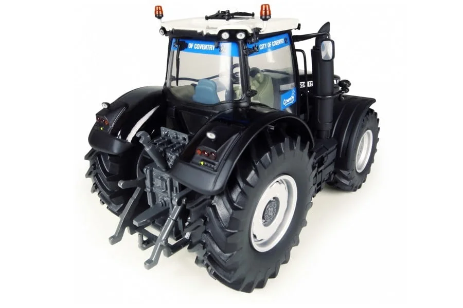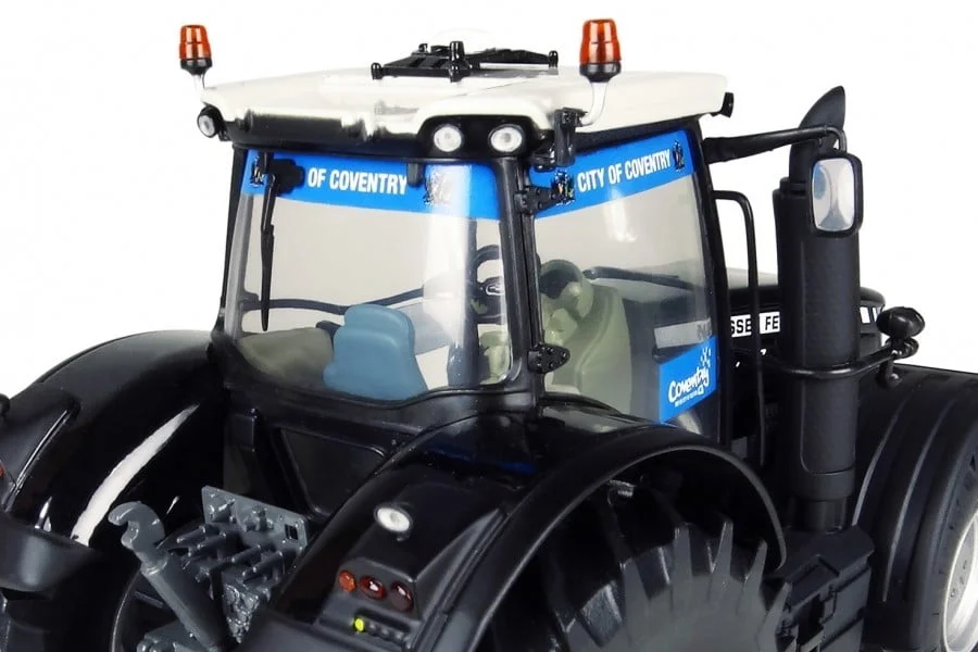 This tractor model features front counterweight and anniversary colour scheme.