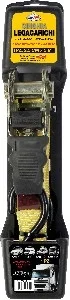 Ratchet tie down with automatic locking and quick thumb release. Brake point: 750 Dan.
