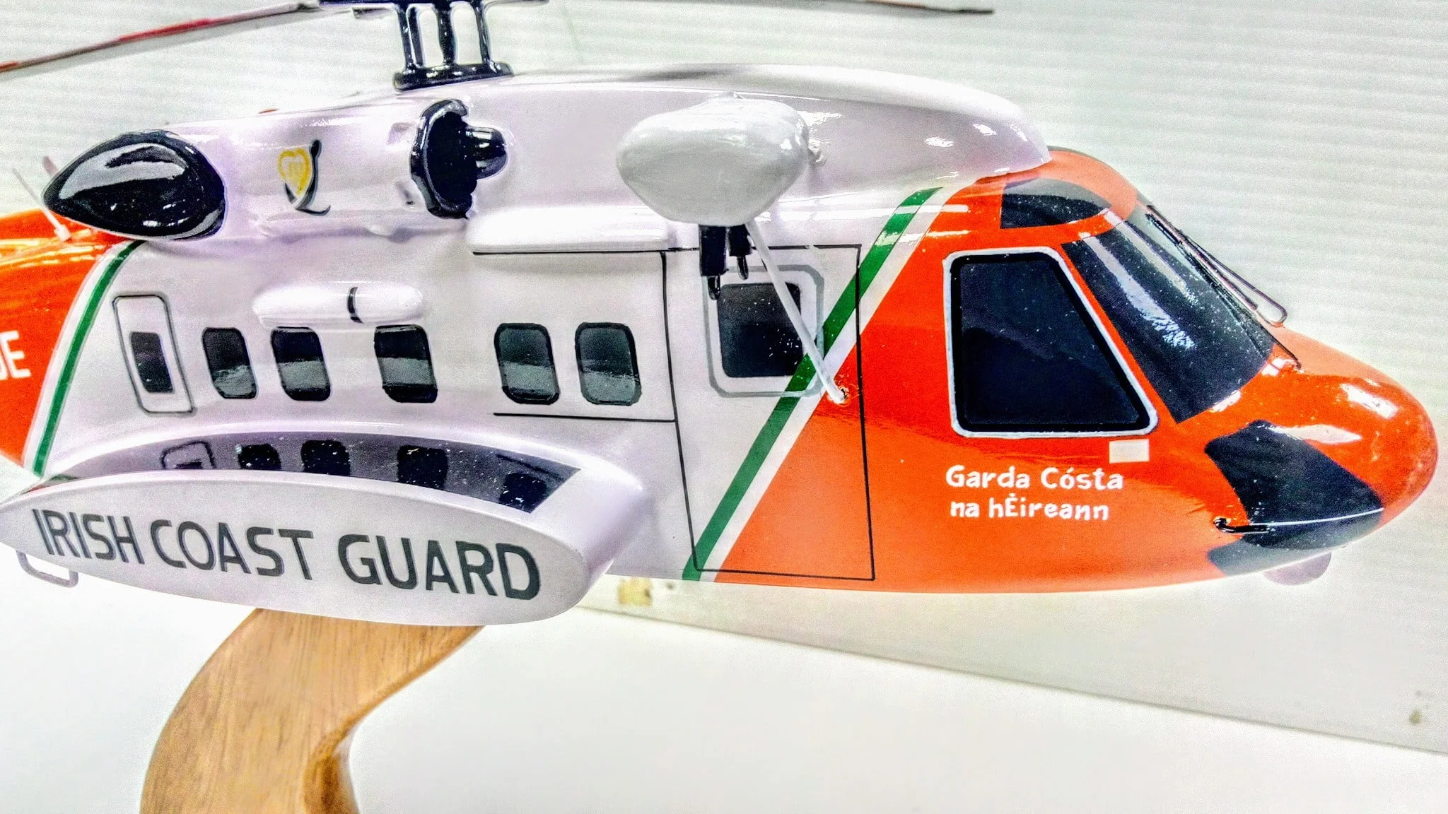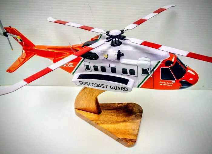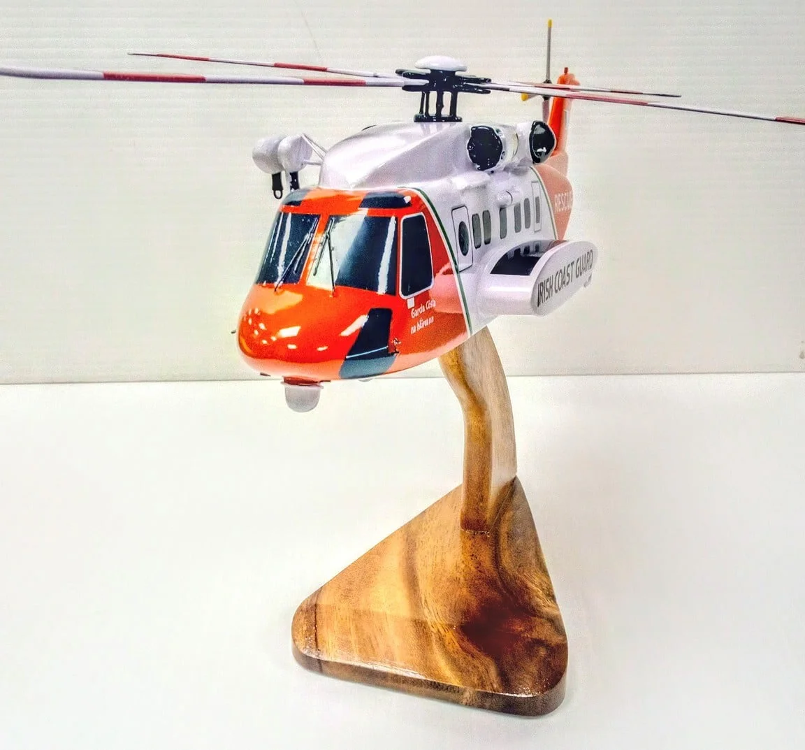 S-92 Irish Coast Guard SAR Search & Rescue Helicopter . Craftsman Hand Carved & Painted in Wood.