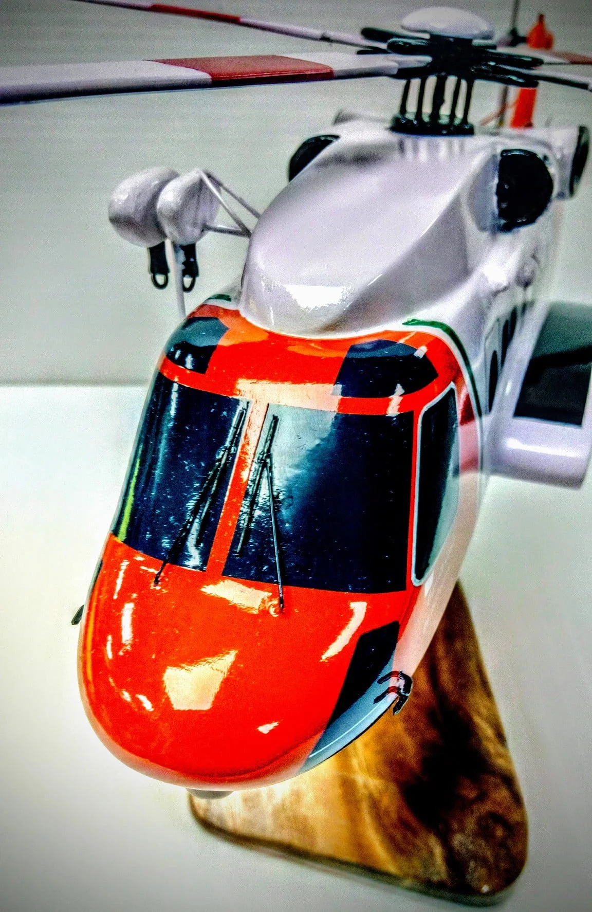 S-92 Irish Coast Guard SAR Search & Rescue Helicopter . Hand Carved & Painted in Wood.