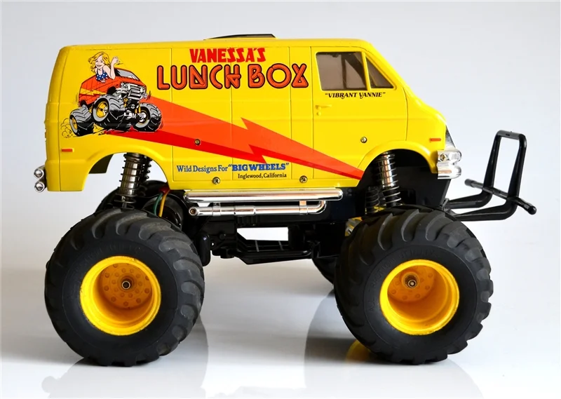 Another one of Tamiya’s classic creations, the R/C Lunch Box (1st released, 1987) was loved for its camp appearance as much as for its R/C performance. The boxy minivan body raised up over monster truck wheels ensure that this R/C van will get attention anywhere you choose to drive it. Use the sides of the van as a canvas to paint your own original designs for the ultimate conversation piece!