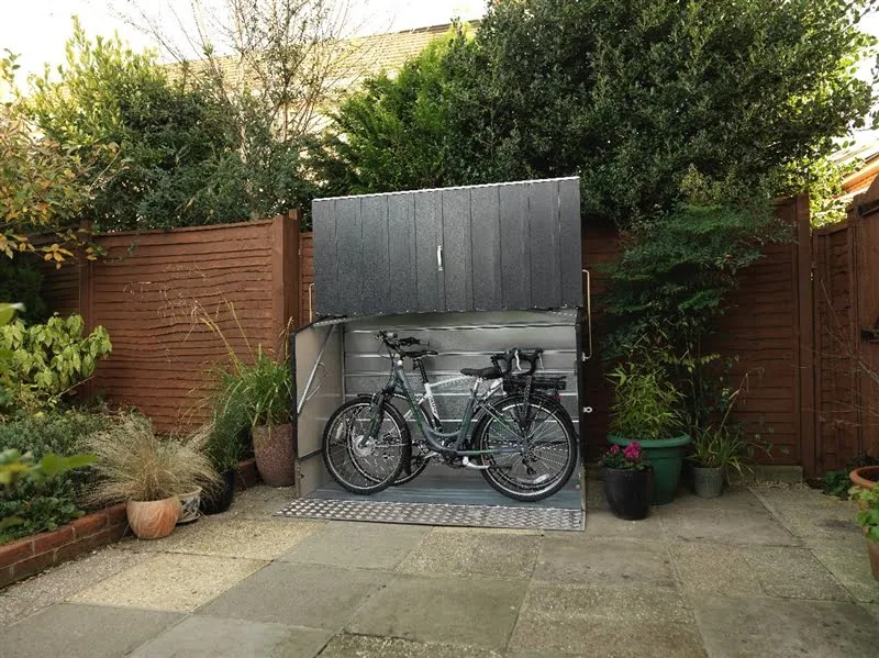 This Type of Bike store is popular with Cyclists who own Heavier Bikes and E-Bikes. Or to facilitate the easier walk-in access that you may require to store a Lawnmower without having to lift it over the Plinth.