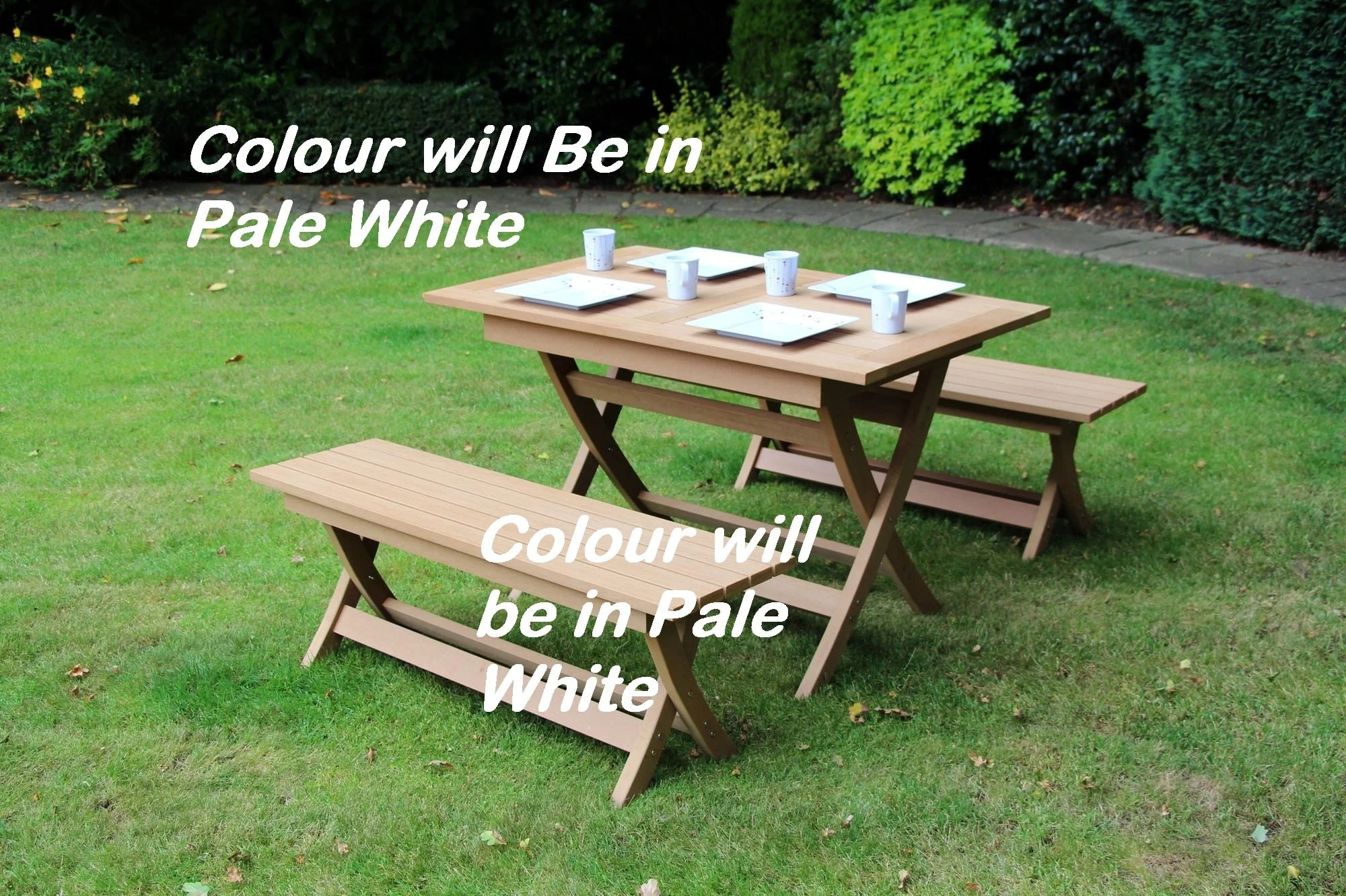 White Winawood Castlebay Garden DiningĀ TableĀ 4 Seater Dining Set- Off White Colour Table + 2 Benches.